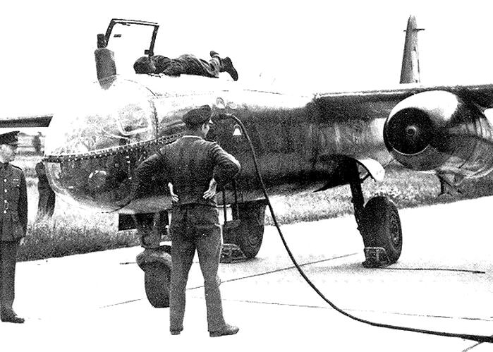 Gôtz prit la fuite et réussit un atterrissage à environ 305 km/h sur le terrain d’Oranienbourg avec peu de dommage. Comble de malchance, Gotz était à peine sorti de l’habitacle lorsque l’avion fut percuté et détruit par un autre appareil à l’atterrissage. L’appareil restant fut rapatrié en Allemagne devant l’avance des alliés puis rapidement retiré du service à l’arrivé d’un certain nombre d’Ar-234B-1 qui, par petits détachements, équipaient les unités expérimentales de reconnaissance nommée Kommando Gotz, Hecht, Sperling et Sommer. Deux autres unités, les 1.(F)/33 et 1.(F)/100, étaient encore opérationnelles à la fin de la guerre. |