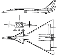 Le dessin évolua durant la phase de maquettage. Le plan canard fut supprimé ainsi que les parties supérieures des stabilisateurs verticaux d'aile. L'aile évolua d'une forme en delta simple vers une forme en double-delta. Les winglets en bout d'aile était basculé vers le bas de 45 ° à l'instar des bouts d'ailes pivotants du XB 70. |