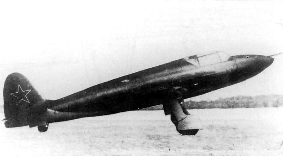 En 1940, Tikhonravov était toujours responsable de la propulsion liquide au sein du RNII alors que Korolev et Glouchko avaient été victime des purges staliniennes depuis 1938. Tikhonravov étudiait alors un chasseur équipé d’un moteur-fusée à carburant liquide monté dans la queue et de statoréacteurs PVRD sous les ailes. L'idée d’utiliser le statoréacteur (PVRD chez les Russes) pour augmenter la vitesse des chasseurs à moteur à piston commençait à être testé en Union Soviétique. Certains constructeurs installèrent sur leurs appareils le statoréacteur construit par Merkulov. Cependant, l’installation de tels moteurs sur des avions à hélices, tels que les I-15 bis et I-153, avait démontré que la vitesse maximale n’augmentait que très peu, ce qui avait mis un terme aux expérimentations. Début 1941, L.S. Dushkin étudiait la version D-1-A de son moteur-fusée, prévue pour une poussée maximale de 1400 kilos, mais qui ne fournira finalement que 1100 kilos. Au printemps 1941, le projet de Tikhonravov est approuvée par Kostikov, directeur du RNII, et le Conseil technique du RNII. Un groupe d’ingénieurs du RNII, dirigé par Tikhonravov, se mit alors au travail sur la conception détaillée. Tikhonravov était chargé des calculs aérodynamiques, tandis que les calculs de résistances mécaniques étaient aux mains de V. D. Yarovitskil. Puis, Kostikov envoya le projet au NKAP (commissariat d'état pour l'industrie d'aviation) où Tikhonravov le défendit le 18 juillet 1942. |