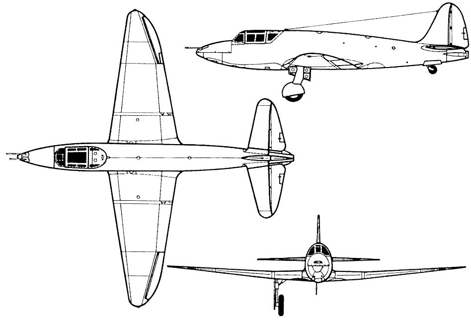 En novembre 1942, Kostikov présenta le projet à K. Evoroshitov et, par la suite, Staline lui-même donna l'autorisation de continuer le travail, nommant Kostikov comme concepteur en chef. A partir de ce moment, beaucoup de documents ont présenté le projet comme étant le Kostikov Ko-3. Avec le recul, on peut dire que Kostikov n’avait vraiment aucun scrupule ! Déjà responsable de l’arrestation de Korolev et de Glouchko, il s’était approprié l’invention des célèbres roquettes Katioucha et s’appropria donc aussi le travail de Tikhonravov sur le 302. Nommé héros du travail socialiste puis lauréat du prix Staline, il sera à son tour victime des purges en 1944. Libéré en 1945, il décédera en 1950 d’un infarctus. En attendant, un budget fut accordé pour la construction du 302 et les essais en vol de deux prototypes. Pour leur construction, le RNII avait désigné l’OKB-55 avec comme responsables M. R. Bisnovat et A. I. Andreyev comme principal adjoint. Le 302 devait décoller avec le moteur-fusée, et une fois à vitesse de croisière, passer sur les statoréacteurs PVRD qui devaient lui donner l’autonomie suffisante pour attaquer plusieurs cibles. Les 302 était construit principalement en bois avec un fuselage monocoque. Les ailes avaient un profil RAF-34 à l’emplanture (15% d’épaisseur relative) et un profil NACA-230 au saumon (épaisseur relative de 8%). En revanche, les gouvernes étaient en alliage léger D1. L'habitacle pressurisé avait une verrière articulée à droite et un pare-brise à l’épreuve des balles. Les trains d'atterrissage principaux et de queue étaient rétractés hydrauliquement. Le même système hydraulique actionnait aussi les ailerons. Deux canons ShVAK de 20 mm devaient être montés dans le nez et deux autres dans le fuselage avant, chacun avec 100 obus. |
