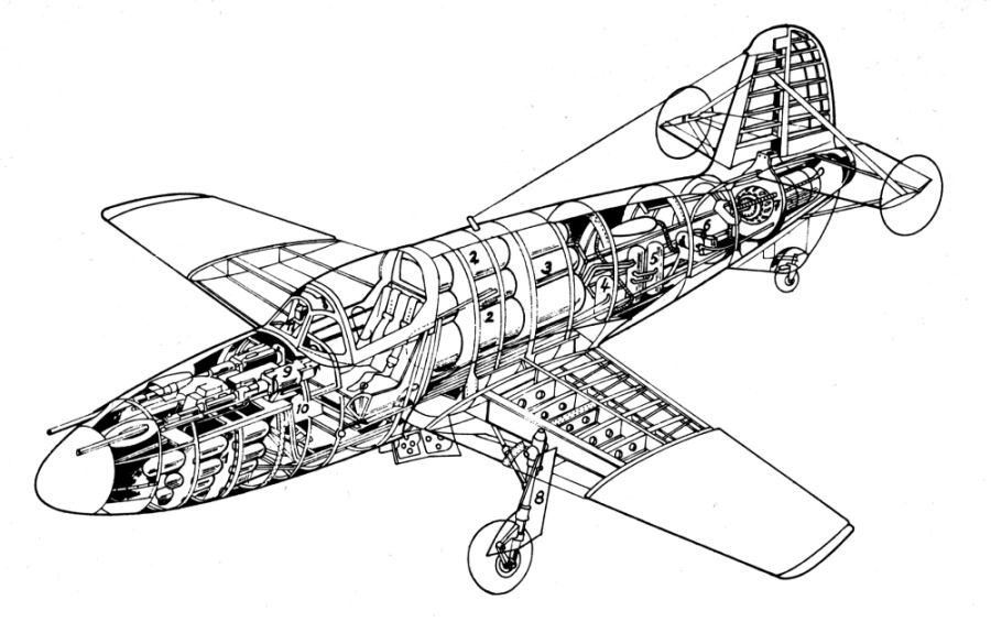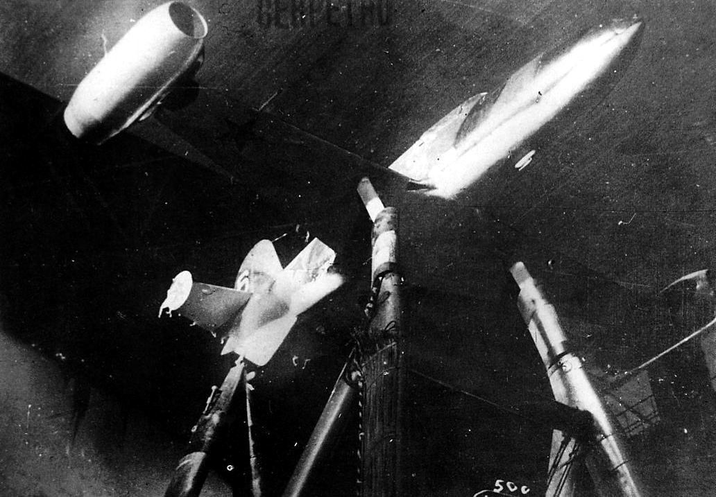 Ce dernier était très dangereux à manipuler et causait d’importants problèmes de corrosion dans les réservoirs de l'avion et les tuyauteries de carburant. A la même époque, les Allemands étaient d’ailleurs confrontés à des problèmes similaires avec le Me-163 Komet qui utilisait comme comburant du peroxyde d’hydrogène presque aussi corrosif que l’acide nitrique fumant. Ces problèmes de corrosion retardèrent d’ailleurs considérablement le développement du BI. Le kérosène et l’acide nitrique étaient stocké dans des réservoirs cylindriques en acier inoxydable eux-mêmes installés dans la partie centrale du fuselage. Les propergols étaient dirigés vers la chambre de combustion par un système à air comprimé ce qui permettaient seulement 2 minutes de fonctionnement à puissance maximale. A l’origine, Dushkin voulait alimenter son moteur avec des turbopompes ce qui aurait permit d’augmenter le volume de carburant disponible, ainsi que la durée de fonctionnement du moteur en éliminant les réservoirs d’air comprimé. Cependant, les ingénieurs se heurtèrent au problème insoluble de la fabrication de pompes fonctionnant en milieu extrêmement corrosif et durent se contenter de l’alimentation par air comprimé expérimenté avec succès sur le RP-318. |