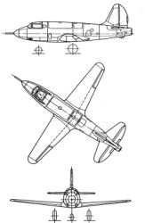 Le Malyutka était équipé du moteur-fusée NII-1. Développé par l'équipe de Glouchko, ce moteur était en fait composé de quatre moteurs RD-1 alimentés avec de l’acide nitrique et du kérosène. La poussé maximale au niveau de la mer était de 1200 kilogrammes. Ne ressemblant à aucun chasseur précédent de Polikarpov, le fuselage avait un fuselage en bois et une aile en alliage léger D-1. La queue était également en alliage D-1. Le train d'atterrissage tricycle et les ailerons à fente étaient actionnés avec un système pneumatique, et l'armement comportait deux puissants canons VYa-23. L'habitacle pressurisé était à l’avant du fuselage avec la radio, les bouteilles d'oxygène et les magasins de munition, suivi d'un réservoir d’un important réservoir d'acide et d’un plus petit de kérosène. |