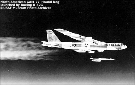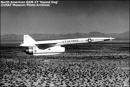 Le North American B-77 Hound Dog était un missile d’attaque nucléaire air-sol à longue portée. Il était emporté par paire sous les ailes d’un bombardier Boeing B-52. La mission du "Hound Dog" était de faciliter les missions de bombardement du B-52 en fournissant à celui-ci des capacités d’attaque de cibles fortement défendues à distance de sécurité. Le programme "Hound Dog" commence le 15 mars 1956 quand l’US Air Force émet les spécifications GOR 148 pour un missile air-surface destiné à équiper le bombardier stratégique B-52. Le projet sera managé par l’US Air Force sous la désignation WS-131B. En août 1957, le secrétaire général de l’US Air Force, James H. Douglas, informe J. H. Kindelberger de North American Aviation que sa compagnie a remporté le contrat de développement du WS-131B. Le 16 octobre 1958, l'US Air Force attribue un contrat de production pour le "Hound Dog" à North American Aviation.