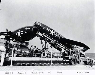 Guidage. En 1945, dans le cadre du projet Derby, la Navy testa une version "américanisée" du V-1 allemand, appelée Loon. En 1950, le projet Trounce était intégré dans le projet Derby. Le projet Trounce était un nouveau système de guidage qui utilisait les signaux de radar à impulsion pour transmettre au missile les ordres aux commandes de vol. La conception et le développement de Trounce continua avec le programme Loon et devait être opérationnel pour le programme Regulus en 1952. Le projet Trounce posa de nombreux problèmes mais le développement continua et les problèmes furent résolus. Un système de navigation rival, qui exigeait un sous-marin de lancement et deux navires de désignation près de la cible, fut également testé en vol.