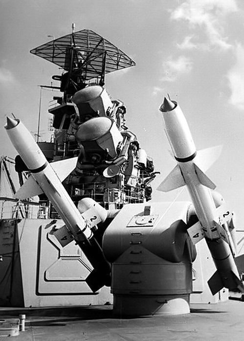 Le Talos fut aussi envisagé par l’USAF comme SAM en attendant la mise au point du Bomarc (voir chapitre 16) ou comme missile anti-radar par la Navy. Cette version, RGM-8H Talos-ARM, fit ses essais en vol en 1965 puis entra en service au Vietnam contre les sites de SAM ennemis. Le Talos fut retiré du service en 1979 et les derniers exemplaires encore en état furent convertis en cible aérienne MQM-8G Vandal pour simuler des missiles anti-navire type Exocet. Il semble que ce modèle soit toujours en service dans l’US Navy. Dès 1958, avant même l’entrée en service du Talos, la Navy et Bendix lancèrent les études pour son successeur appelé au début « Super Talos ». Le principal problème du Talos était le système de guidage par faisceau radar qui limitait le nombre de cible pouvant être engagé simultanément par le navire. La solution retenue pour le Super Talos était le système radar AN/SPG-59 qui envoyait les corrections de trajectoire au missile après calcul à bord du navire.