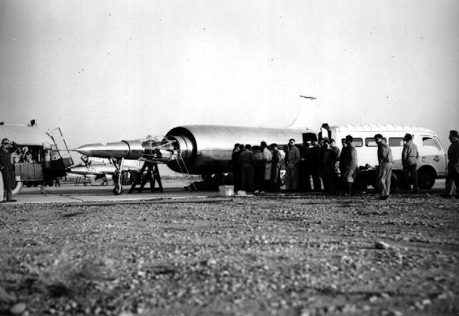 Pendant ce temps, Leduc avait présenté le successeur du 021 sous la forme d’un avion possédant une ligne vraiment extraordinaire, le 022. Même aujourd’hui, cet appareil semble sortir d’un film de science fiction. Il se distinguait des 010 et 016, plutôt ventrus, par un impressionnant fuselage cylindrique précédé d’une cabine de pilotage très effilée avec une grande pièce en plexiglas transparente comme sur le 021. L’aile était nettement plus mince que celle de ces prédécesseurs, en flèche et avec une forme beaucoup plus moderne. Elle avait d’ailleurs une petite taille par rapport au fuselage et portait des réservoirs très profilés sur les saumons d’aile. Egalement très minces, les empennages étaient eux aussi munis de carénages d'extrémités. La profondeur était monobloc et toutes les gouvernes étaient munies de servocommandes construites et brevetées par Leduc. Par contre, Leduc avait abandonné le système de train monotrace du 021 pour revenir à un train classique s’escamotant dans le fuselage. Mais la plus grande différence était, bien sûr, l'intégration, dans l'axe du fuselage, d'un turboréacteur Atar 101D 3 de 2800 kgp, qui permettait au chasseur de décoller et d’atterrir par ses propres moyens. Le statoréacteur, de 2 mètres de diamètre, possédait un système de combustion plus sophistiqué que ses prédécesseurs avec six chambres de combustion concentriques et étagées. |