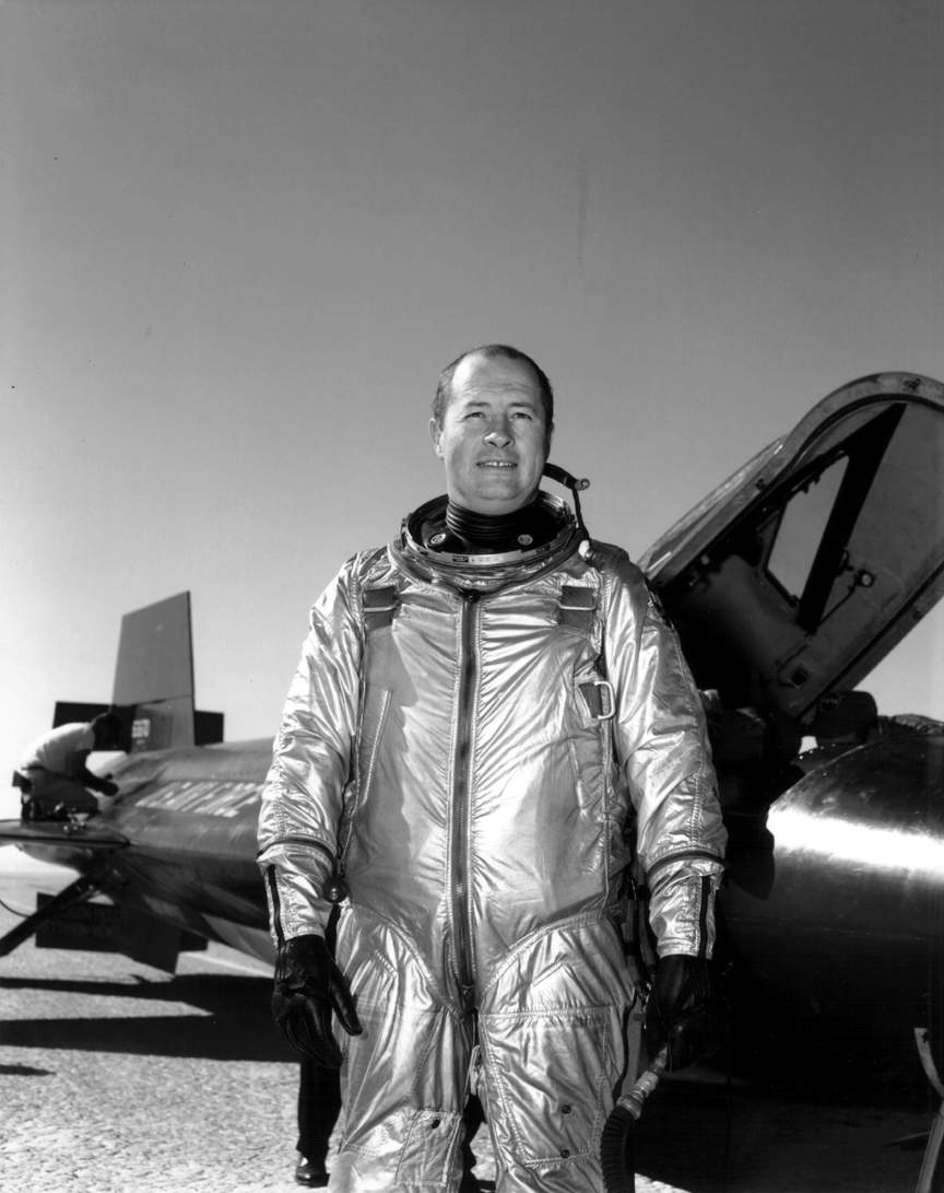 Sur le tableau de bord, seule la panne du moteur inférieur était apparente et Petersen, respectant la consigne, tenta un ré-allumage. Dans l'intervalle, un des avions d'accompagnement, piloté par Joe Walker, avertit le X-15 que 1e deuxième XLR-11 était également inopérant. Alors, Petersen qui avait fini par penser que, décidément, l'avion volait très mal avec un seul moteur, cessa toute tentative de ré-allumage, vida rapidement ses réservoirs et atterrit sans problème au nord-est du Rogers dry Lake, à 45 km du point prévu. Rien n'est jamais acquis dans les essais en vol : telle était la conclusion de ces deux épisodes. Les procédures opérationnelles semblaient validées, le fonctionnement des systèmes avait été démontré jusqu'aux limites de leurs performances. Et voilà que tout était remis en cause, que tout pouvait arriver, n'importe quand ! Le 11 octobre 1960, un régulateur défaillant du circuit de peroxyde d'hydrogène empêcha le largage du X-15 lors de la mission "1-14-26 ", mais Petersen se rattrapa avec éclat le 20 octobre suivant, en atteignant Mach 1,94 et un peu plus de 16000 m (1-14-27). En attendant le gros moteur. Après Pete Petersen, John B. Mc Kay (NASA), Bob Rushworth (USAF) et Neil A. Armstrong (NASA) réalisèrent chacun deux vols de familiarisation à bord du X-15 n° 1 entre le 28 octobre 1960 et le 1er février 1961, et poussèrent l'avion aux alentours de Mach 2 et de 15000 m d'altitude. Ces missions permirent en outre de corroborer les résultats déjà obtenus antérieurement dans le domaine de la stabilité et des commandes de vol en régime faiblement supersonique, en fonction notamment de l'angle d'incidence et de variation de sensibilité du SAS. Par ailleurs, au cours de son deuxième vol (mission "1-19-32" du 9 décembre 1960), Armstrong calibra en vol le capteur "Q-Ball " monté pour la première fois sur l'avion de recherche à la place de la perche anémométrique, et en prévision des missions "chaudes" au-dessus de Mach 3,5. Armstrong, le plus jeune pilote du X-15 (il avait 30 ans en 1960) avait participé au programme du développement du "Q-Ball" et était donc le mieux placé pour l'essai. Il s'acquitta de cette tâche sans problème, ce qui permit à Bob White d'entreprendre une mission visant à qualifier le "Q-Ball " jusqu'à Mach 3.5, performance limite des XLR-11. Ce vol, avorté le 15 décembre 1960, intervint finalement le 7 février 1961 (1-21-36). White atteignit Mach 3,5, démontra le bon comportement du capteur, et, incidemment, déroba à Walker (c'est à dire à la NASA) le record absolu de vitesse. |