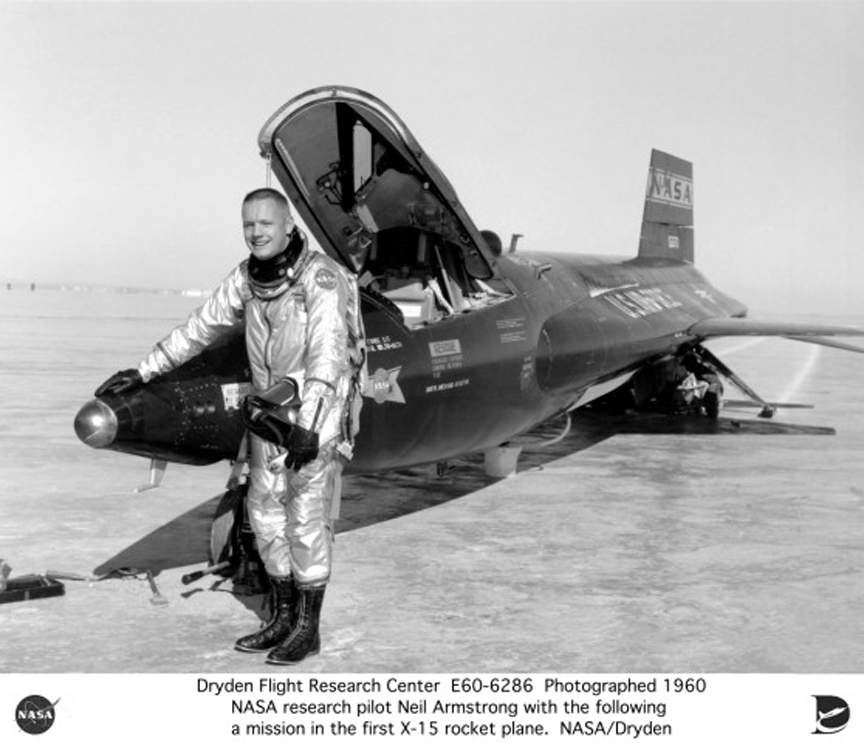 Restait à entreprendre l'assaut final, celui qui devait mener le X-15 à 76 200 m (250 000 ft), valeur contractuelle, ou plutôt 80 000 m, objectif qui n'était pas fixé au hasard—Les 80 km correspondaient en effet aux fameux "50 miles" où l’US Air Force situait la frontière entre l'atmosphère et l'espace, entre l'Aviation et l'Astronautique. Si White franchissait cette limite, il deviendrait le premier astronaute en uniforme bleu, à placer à égalité avec Shepard et Grissom, les deux seuls Américains de l'espace en cette fin d'année 1961, L'USAF, qui avait perdu l'essentiel de ses prérogatives en matière d'espace habité, au profit de la NASA, verrait là un juste retour des choses. Le premier astronaute "ailé". L'outil de cet accomplissement venait d'arriver à Edwards, le 29 octobre 1961. Il s'agissait du X-15 n° 3 (matricule 56-6672), entièrement reconstruit après son explosion au sol le 8 juin 1960, lors d'un essai statique du premier moteur XLR-99. Le n° 56-6672 se distinguait des deux autres X-15 par un système de commandes de vol révolutionnaire, désigné MH-96 et fabriqué par Honeywell à Minneapolis. Il associait les commandes aérodynamiques et le système de stabilisation par fusées en un seul dispositif commandé par le pilote au travers du mini-manche "high g". Suivant l'environnement du véhicule (atmosphérique, spatial ou hybride), le MH-96 réagissait automatiquement pour activer gouvernes ou/et fusées. Cet équipement permettrait d'aborder avec davantage de confiance et de sécurité la tentative prochaine de record d'altitude. Neil A. Armstrong fut désigné pour réaliser les essais du troisième X-15. Ensuite, White prendrait le relais pour décrocher le titre d'astronaute ! Le 20 décembre 1961, Armstrong effectua ce qui était aussi son premier vol (mission 3-1-2) sur un véhicule équipé du XLR-99 et réalisa, avec un plein succès, le premier test du MH-96 jusqu'à l'altitude, modeste, de 24 700 m. Trois autres vols suivirent, entre le 17 janvier et le 20 avril 1962, au cours desquels il évalua le MH-96 de plus en plus haut, jusqu'à 63 250 m, et à très faible pression dynamique. Cette démonstration devait valoir au pilote l'Octave Chanute Award de 1962. Le 30 avril 1962, Joe Walker marqua un point très important (mission 1-27-48) dans la course aux 80 kilomètres, en portant le nouveau record d'altitude à 75 190 m à bord du X-15 n° 1, frôlant ainsi la performance inscrite au cahier des charges (76 200 m ou 250 000 pieds). Ce vol servit en outre à évaluer le comportement des fusées de stabilisation à haute altitude. Il permit par ailleurs d'approcher la limite d'incidence avec dérive ventrale complète, lors de la rentrée atmosphérique (+21").... La température maximale atteinte pendant le vol n'atteignit "que" 480°C ; cela illustrait le fait que plus l'angle d'attaque du X-15 était grand, moins l'échauffement à la rentrée était critique. |