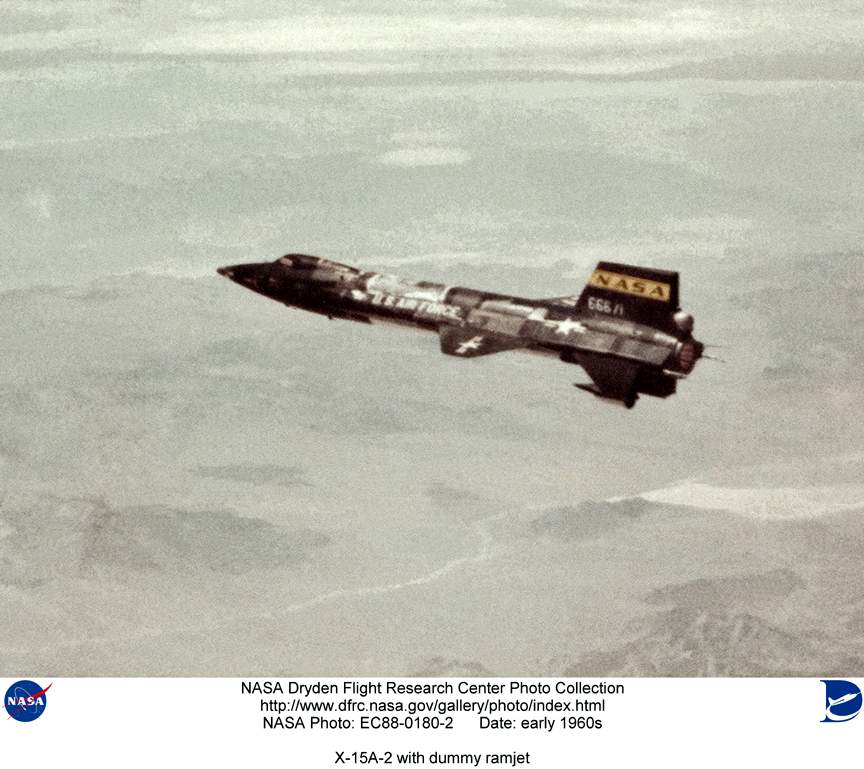 Les essais au sol progressèrent rapidement et, le 15 juin 1964, eut lieu un vol captif de vérification, avec le Major Bob Rushworth aux commandes. Dix jours plus tard, Rushworth effectua le vol inaugural (mission 2-32-55) du X-15A-2, poussant sans problème jusqu'à Mach 4,59, à 25 390 m. Le 14 août 1964, lors de son deuxième vol libre (mission 2-33-56), le X-15A-2 atteignit Mach 5,23, avec toujours Rushworth à bord. Cependant, alors que l'avion approchait Mach 4.5, à 26 820 m d'altitude, un incident faillit tourner à la catastrophe. Une trappe du logement de train avant s'ouvrit inopinément, déséquilibra le véhicule et provoqua, selon Rushworth, une "effroyable détonation". Le pilote parvint néanmoins à contrôler le X-15A-2 mais, à l'atterrissage, les pneus du diabolo, gravement endommagés par réchauffement aérocinétique, explosèrent, et le X-15 continua sur les jantes ! Cet épisode spectaculaire valut à Bob Rushworth une autre Distinguished Flying Cross. La mission suivante, le 29 septembre 1964, fut illustrée encore une fois par un incident avec la porte du train avant et confirma la nécessité d'un contrôle. Quatre vols captifs, en novembre 1964 et février 1965 y furent consacrés. |