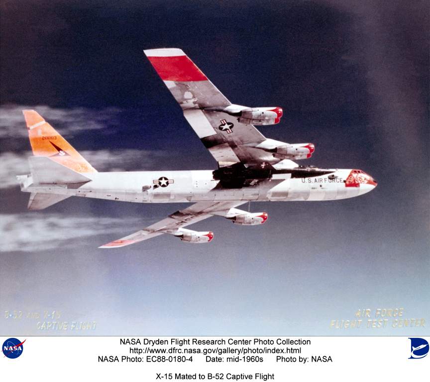 Disponible début décembre, comme prévu, le X-15 n° 1 attendit pourtant le 23 janvier 1960 pour accomplir son premier vol propulsé, dans le cadre de la mission "1-2-7 ". II atteignit ce jour-là Mach 2,53 et 20 374 m d'altitude, ses records. North American s'était engagé auprès de l’US Air Force à ne pas dépasser Mach 2 et 30 kilomètres d'altitude dans le cadre des essais constructeur. Toutefois, les formidables capacités du X-15 empêchaient de respecter scrupuleusement la limitation fixée pour la vitesse ! C'était déjà vrai avec les moteurs XLR-11 ; ça le serait a fortiori davantage avec le gros moteur. Finalement, l'USAF demanda simplement au constructeur de rester en deçà de Mach 3. |