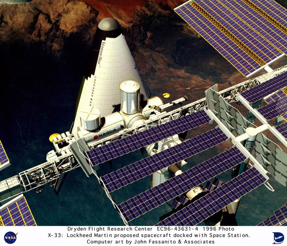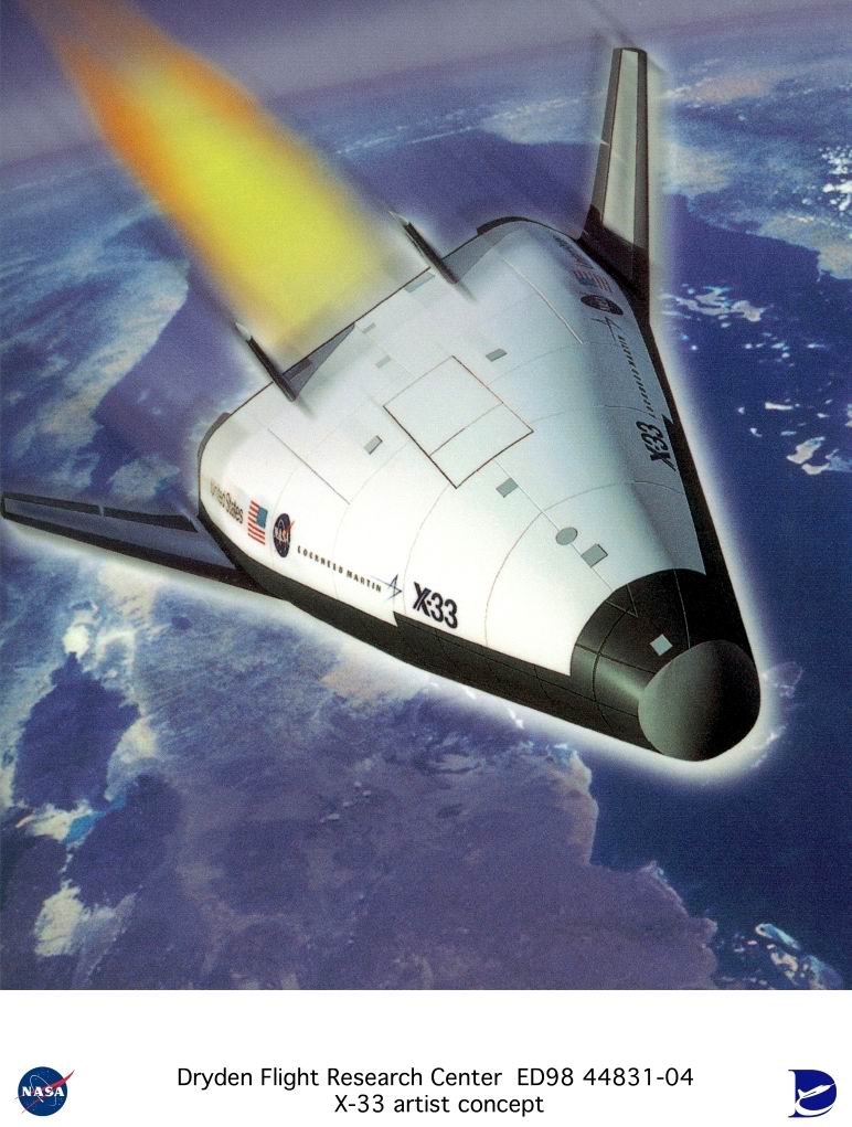 A partir de 1994, la NASA songe sérieusement à remplacer ses navettes qui vieillissent. Malgré le faible taux de vols, puisqu’au départ du projet on comptait sur … 60 par an ( ?), alors que la moyenne s’établit aujourd’hui à 8 grand maximum, et que ce chiffre va baisser. Les modèles existants ont beau être modernisées par l’adjonction d’un cockpit à écrans LCD (« glass cockpit ») fait par Honeywell, dont le premier vol est prévu en avril 2001, le concept lui-même est remis en cause, puis qu’une grande partie de l’équipement est perdu à chaque vol (le réservoir central seul, car les boosters sont récupérés par Thiokol et remis en état). Le projet démarré en 97 devient alors le RLV, pour Reusable Launch Vehicle… et revient indubitablement au spécialiste Lockheed Martin, qui propose une navette à décollage vertical et rentrée pilotée dans l’atmosphère. Façon… Disneyland, avec son « Space Rocket », qui montre depuis des années un voyage dans l’espace de ce genre à des millions de visiteurs. |