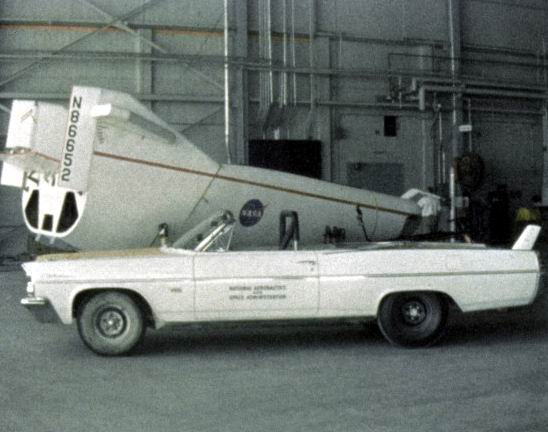 Un appareil rond sur le dessous, plat sur le dessus et en forme de cône au sommet arrondi, qui produit par sa seule forme un ratio de poussée de 1,5…Un profil d’aile ventrue inversé. Enfin tout, sauf une forme d’avion conventionnelle ! Dale envisage d’en faire un modèle en taille réelle. Reste qu’il faut financer le projet : il a aussi des bouches à nourrir, ce jeune ingénieur passionné. Quelque temps tenté par le prix de la fondation Kremer décerné par les anglais au premier vol à traction humaine -100 000 livres- (réalisé quelque temps après, à peu de km de là, par le « cycliste vélivole » MacCready, autre fêlé notoire, avec son Gossamer Albatross) notre touche à tout, têtu, se remet au travail sur son fer à repasser volant. Et commence à frapper aux portes des responsables de la NASA. Il se trouve très vite deux supporters enthousiastes, et pas des moindres. Un autre ingénieur talentueux du nom de Dick Eldredge (à eux deux, ils ressemblent à Laurel et Hardy, l’un est petit rondouillard, l‘autre un grand efflanqué) et un nouveau pilote de X-15, Milt Thompson (il atteindra 214,100 pieds et mach 5,48 en 14 vols). Tous trois sont persuadés qu’ils tiennent là le véhicule spatial de l’avenir. Ils tentent alors de convaincre la NASA de transformer les 80 cm de balsa en véhicule de rentrée dans l’atmosphère. |
