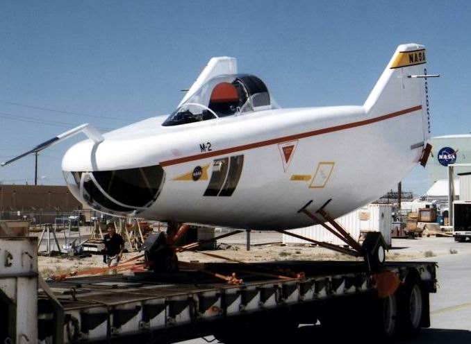 Sur la piste 17, la plus longue d’Edwards AFB, le 16 août 1963, à 7 heures du matin, par temps stable, le C-47 s’ébroue, tirant derrière lui à 300 m la première baignoire bientôt réellement volante. Quelques minutes plus tard, tout le monde est à 12 000 pieds. Après deux virages, à 9 000 pieds, le M2F1 est libéré. Il plonge comme prévu tel un parpaing, mais Milt Thompson le redresse et lui fait faire un arrondi magnifique. Il se pose sans avoir même utilisé les 6 secondes de fusée dont il dispose, en cas de mauvais positionnement. Le « vol » a duré 217 secondes seulement. Tournée générale pour Milt, le soir au domicile de Reed, qui ressemble ce soir là au Juanita, le plus gros bar de Rosamond, ou avaient lieu les "X-15 parties", après chaque vol du monstre (des noubas restées dans toutes les mémoires paraît-il). La bande « d’amateurs » a réussi son pari. Plusieurs vols se succèdent rapidement. En décembre, Chuck Yeager himself, qui traîne invariablement dans les parages, se joint à la partie. Comme à son habitude, il fait mieux que ses congénères, et stoppe l’appareil à l’atterrissage d’un grand coup de patin, pile-poil en face du camion radio suiveur. Et déclare en descendant à qui veut l’entendre vouloir faire à tout prix un tonneau avec ce « truc », qui semble vraiment beaucoup lui plaire. Ce qui lui est automatiquement refusé ! L’engin effectuera plusieurs sorties, avec divers pilotes, dont une qui voit ses roues arrières se détacher… à l’atterrissage. On les remplacera par des roues de Cessna 180, et le bidule à moignons d’ailes repartira après quelques semaines de réparation. |