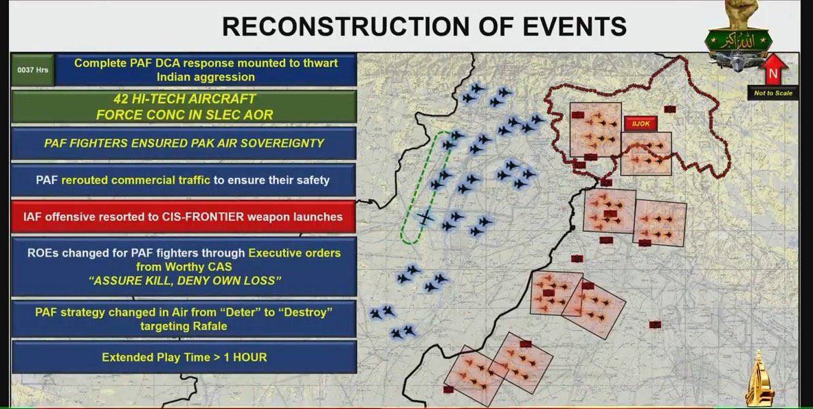 En réponse, le Pakistan a affirmé avoir abattu cinq avions indiens : trois avions de chasse Rafale, un Sukhoi Su-30MKI, un MiG-29 et un drone de reconnaissance IAI Heron. L’Inde n’a pas confirmé ces pertes, mais a reconnu que certains de ses avions n’étaient pas revenus.