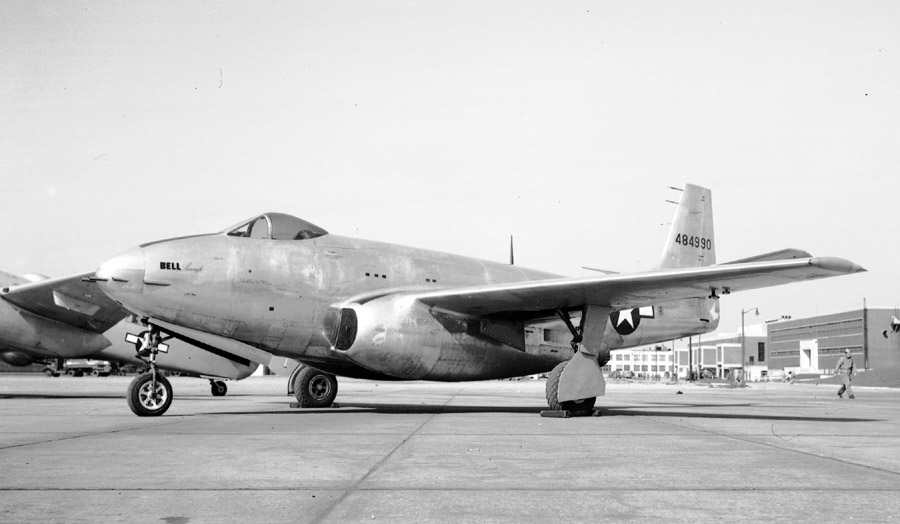 En mars 1944, quand l’USAAF cherche un chasseur à réaction à long rayon d’action capable d’escorter les bombardiers en territoire ennemi, le constructeur américain Bell lui présente son Model 40, en étude depuis 1943. Cet appareil, conçu par Charles Rhodes, reprend la formule générale du P-59 Airacomet, mais ses dimensions sont un peu plus importantes et le cockpit plus avancé, ce qui permet de dégager de l’espace dans le fuselage pour installer des réservoirs de carburant de plus grandes dimensions et dont le volume total atteint les 4'350 litres. Un tel volume de réservoir permettant de pallier à la grande consommation de ces nouveaux propulseurs.