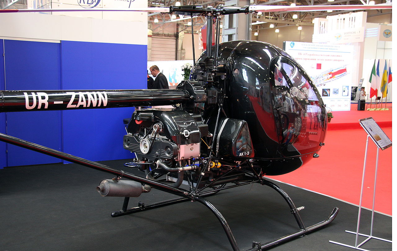 Aerokopter AK 1-5 : Prototype présenté lors d’une exposition à Kiev, modifié, mais encore muni d’un rotor principal à cinq pales.