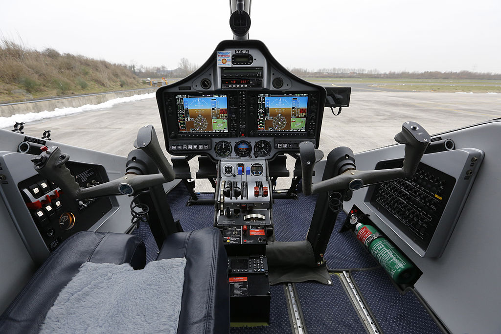 Le poste de pilotage est muni de deux sièges, bien qu’un seul pilote soit nécessaire pour le faire voler. Les instruments sont réunis sur une console centrale. La cabine peut accueillir jusqu’à six personnes, soit un pilote et 4 ou 5 passagers.
